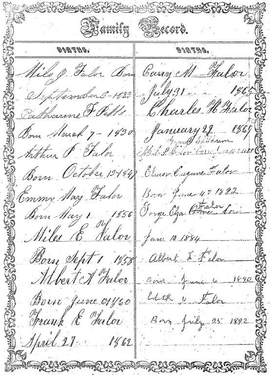 Page 1 of 2. Copy of hand written family records. Unknown authors, unknown record age.