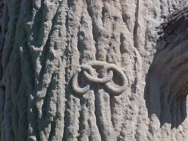Close up of the chain on the monument - It is a symbol of the Independent Order of Odd Fellows, a fraternal organization. Stands for Friendship, Love, and Truth.