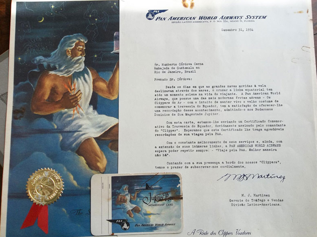 He received this letter from Pan American World Airways for a flight from Spain to Rio on 11/26/1954