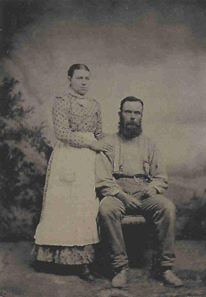 Albert Allen Falor and Arrabelle Warren Hazelwood Falor. Picture taken between 1886 and 1890. Original image is a tin type.
