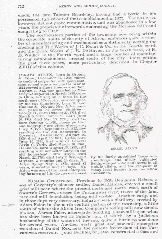 "Fifty Years and Over, Akron and Summit County", by Ex-Sherriff Samuel A. Lane, Page 712, discussing Isreal Allyn and a bit on Adam Falor.