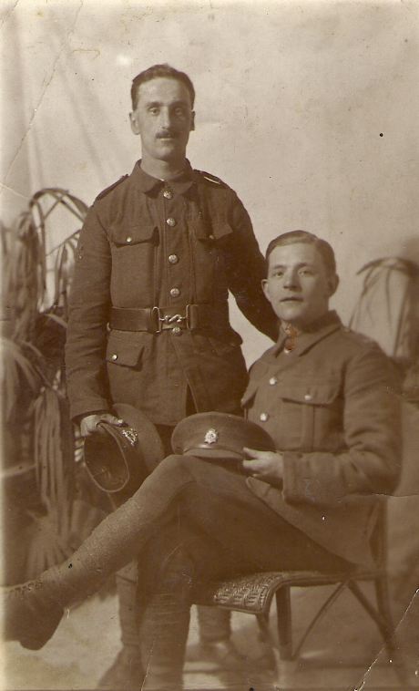 Arthur Clements (sitting) with Jack Barnsley (standing) first husband of Rose Clements. Jack died during WW1.