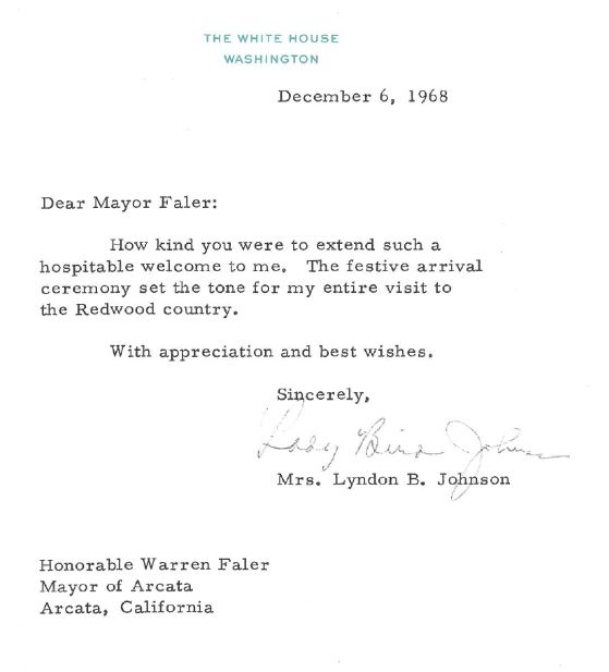 "Here is the letter from Lady Bird Johnson - her people totally got Dad's name wrong - how one gets Warren Faler out of Ward Falor, I don't know"