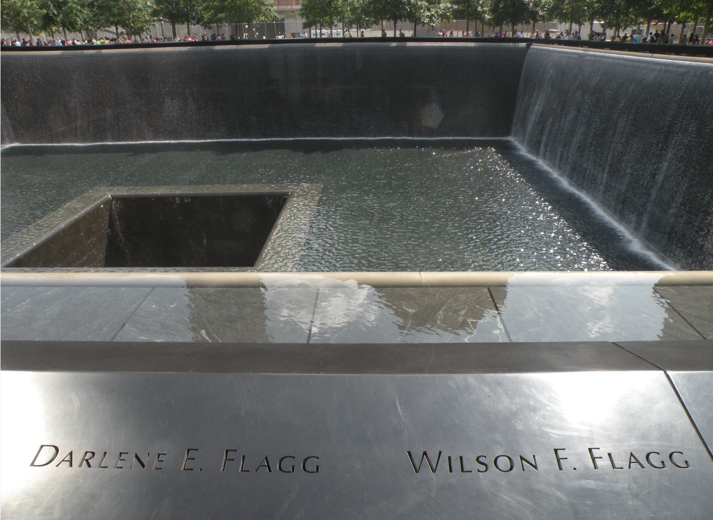 The names of Retired U.S. Navy Rear Admiral Wilson Falor Flagg and his wife, Darlene on the memorial (South Tower, section S72, on the side by the 911 Memorial Museum entrance). They were on American Airlines Flight 77, 9/11/2001