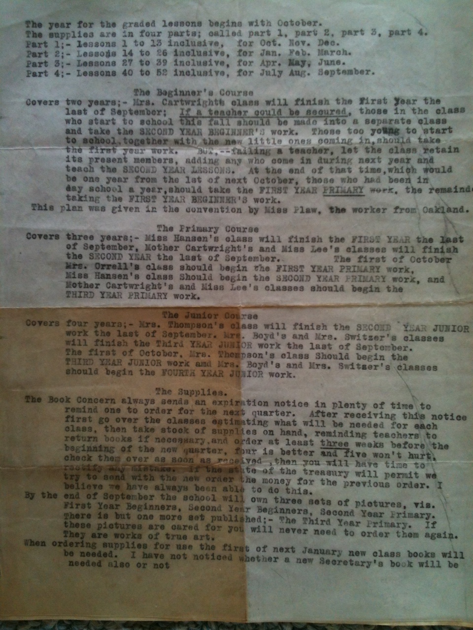 Harry D. Ball and Edith U. Falor's handwritten marriage cert is on the back of this typed school year plan.