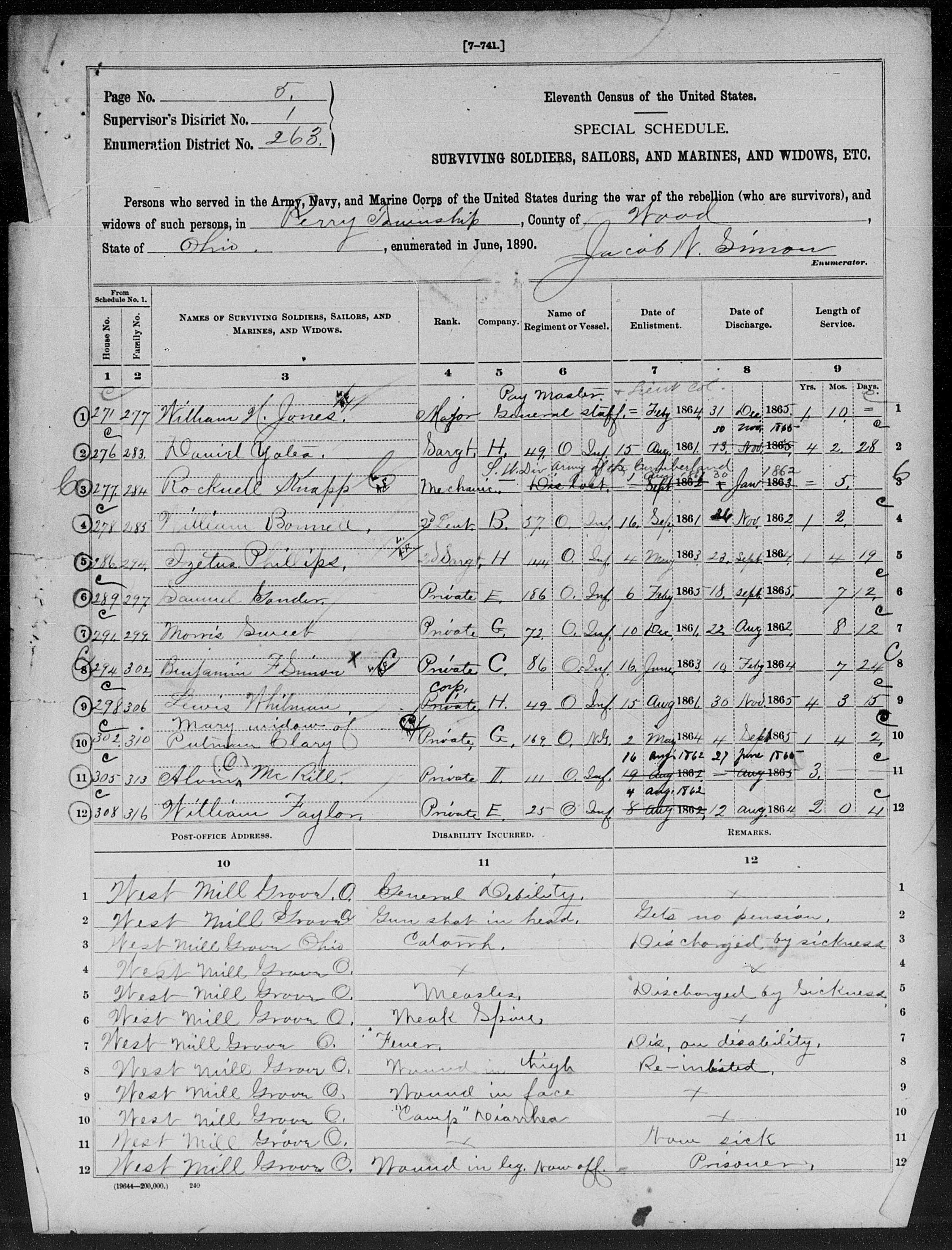 William Faylor's 1890 Civil War Census.