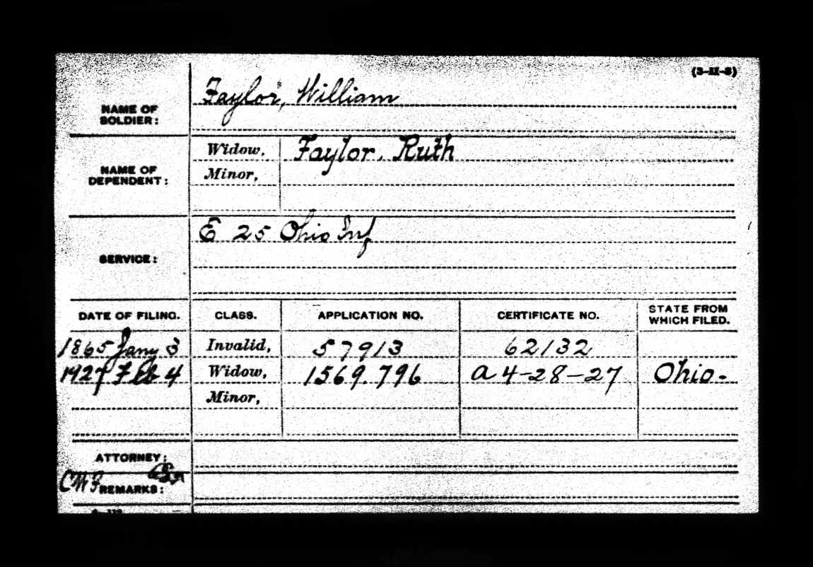William Faylor's Civil War Pension OH 25th Infantry, Company E.