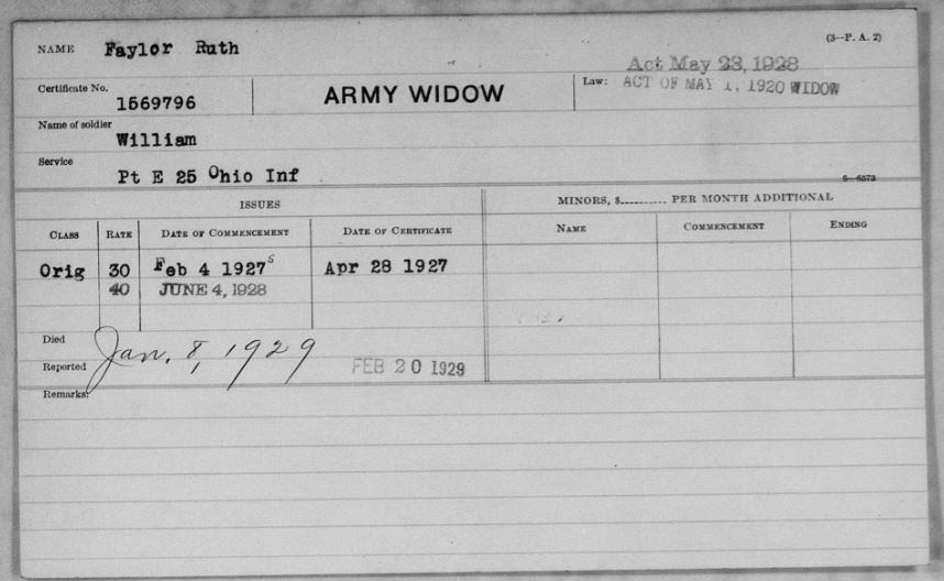 William Faylor's Army Death Certificate.