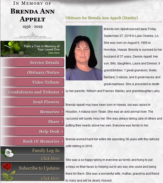 Obituary for Brenda Ann Appelt (Stanley)