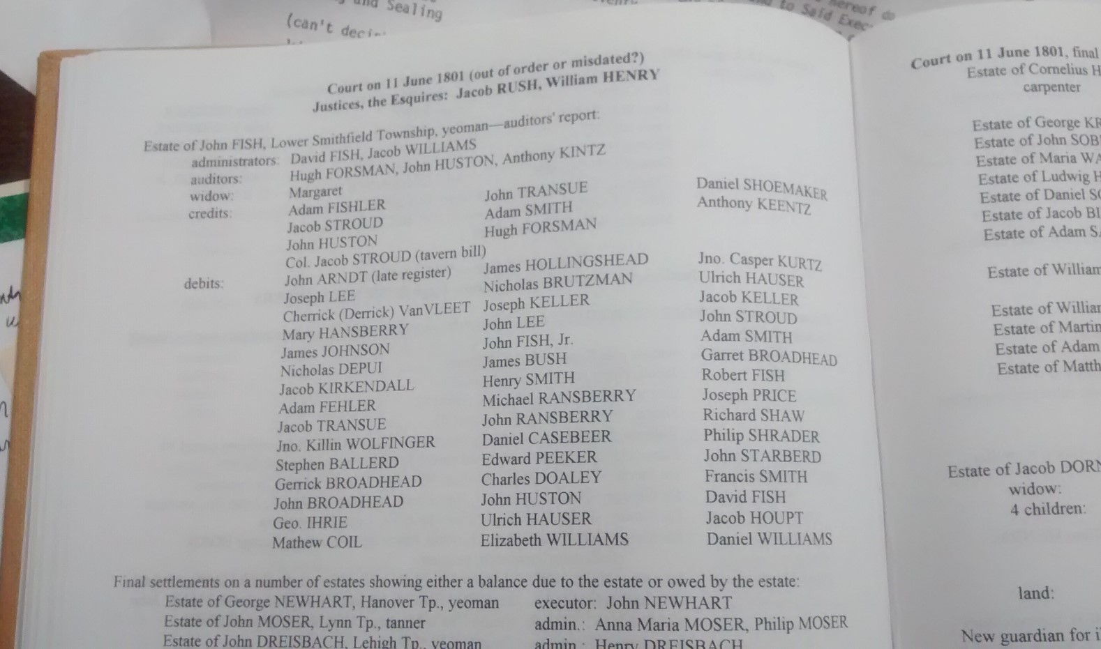 | Orphan Records* | 23 March 1780 | Northampton County, PA, USA ; Petition of Dorothea Fehler, widow of Adam Fehler, late of Saucon Township leaving 5 children. Dorothy, Ann Margaret, Ann Mary, John Adam (All above age of 14) and John George, under age of 14.Northampton County Orphans Court records, file 38-23671 |